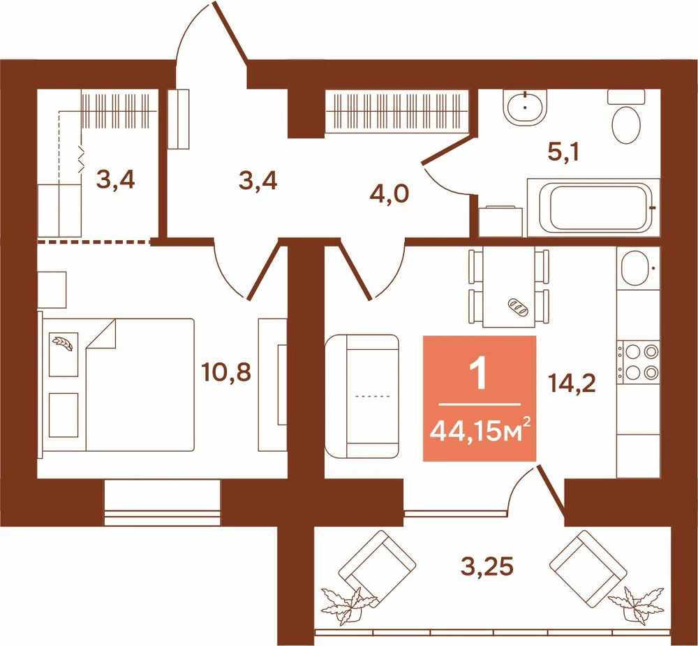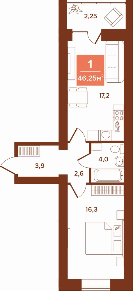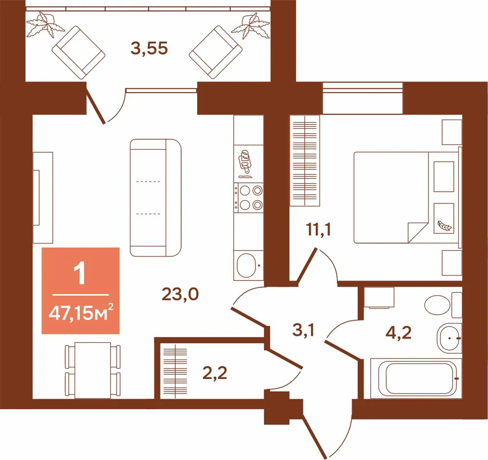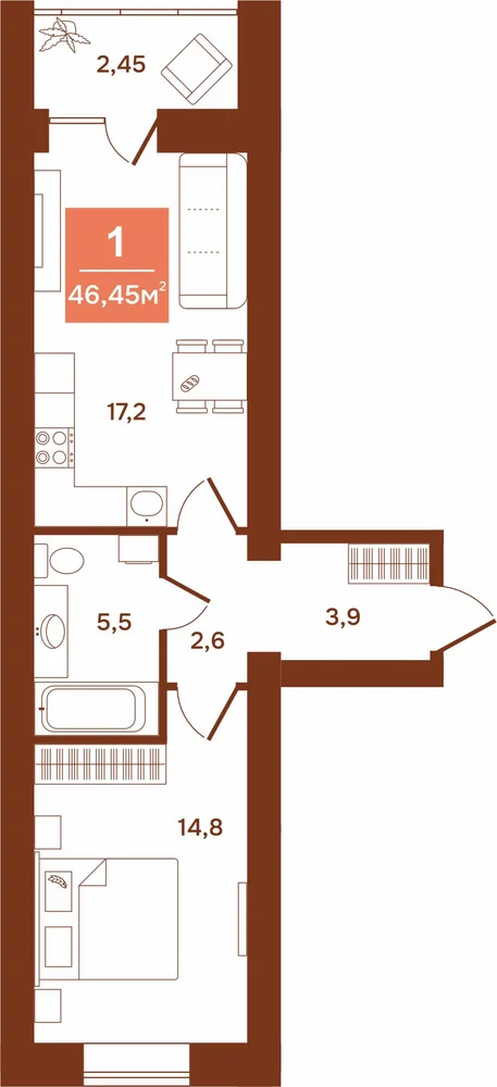 1-комнатная