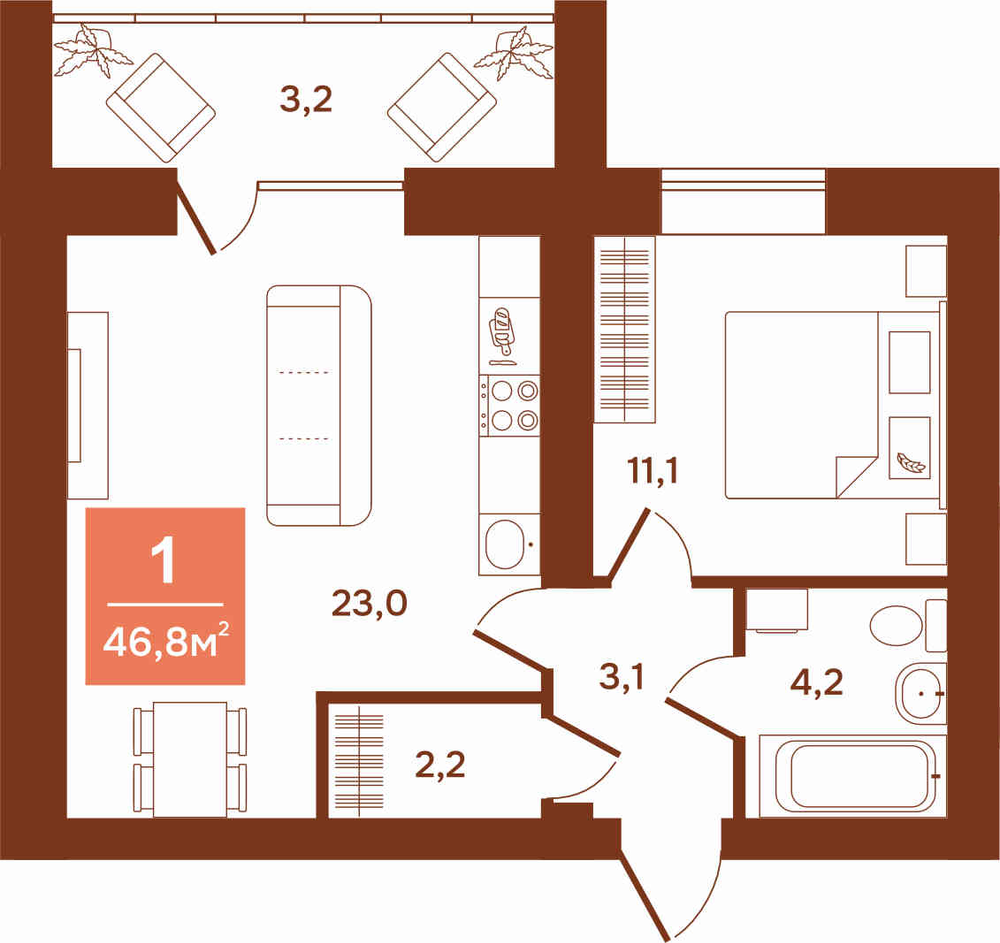 1-комнатная